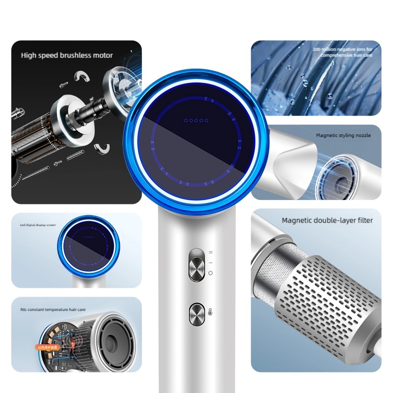 High-Speed Hair Dryer – 110,000 RPM Brushless Motor, 200M Ions & Smart LED Display