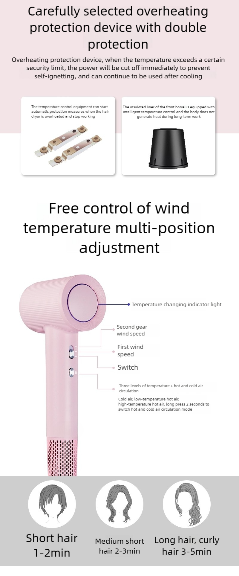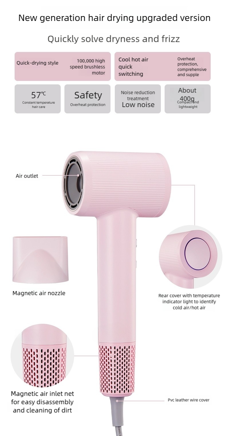 A professional-grade hair dryer designed for fast, healthy drying and styling. Featuring a high-speed brushless motor, intelligent temperature control, and compact design—perfect for home, travel, and salon use.