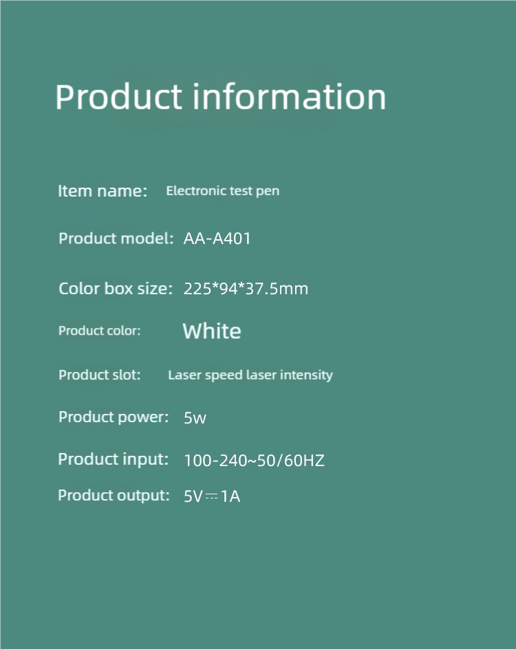 USB-powered (input: 100-240V~50/60Hz; output: 5V==1A) for convenient recharging.